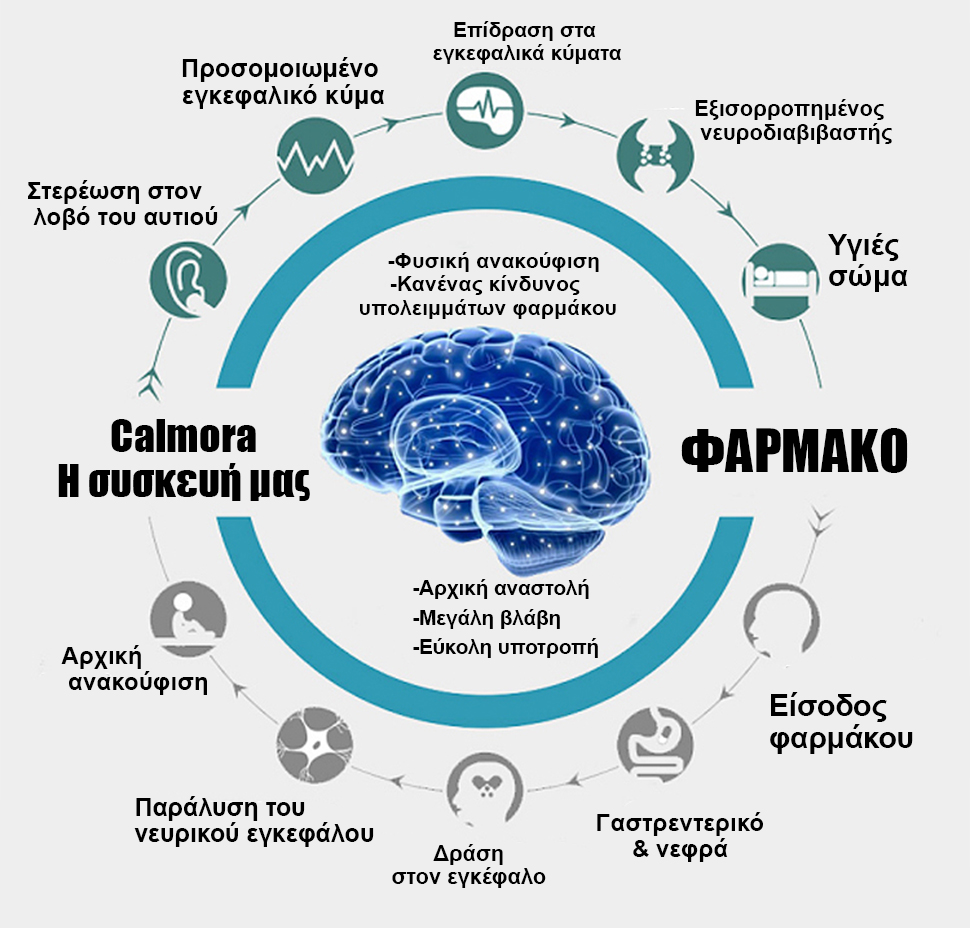 Με τη Calmora, δεν παρέχουμε απλώς μια συσκευή – σας προσφέρουμε μια φυσική λύση για την ανακούφιση από το άγχος, την κατάθλιψη και την αϋπνία. Η Calmora είναι σχεδιασμένη για να ενισχύει τη χαλάρωση και να βελτιώνει την ποιότητα του ύπνου σας, προσφέροντας μια εύκολη και ασφαλή χρήση στο σπίτι.